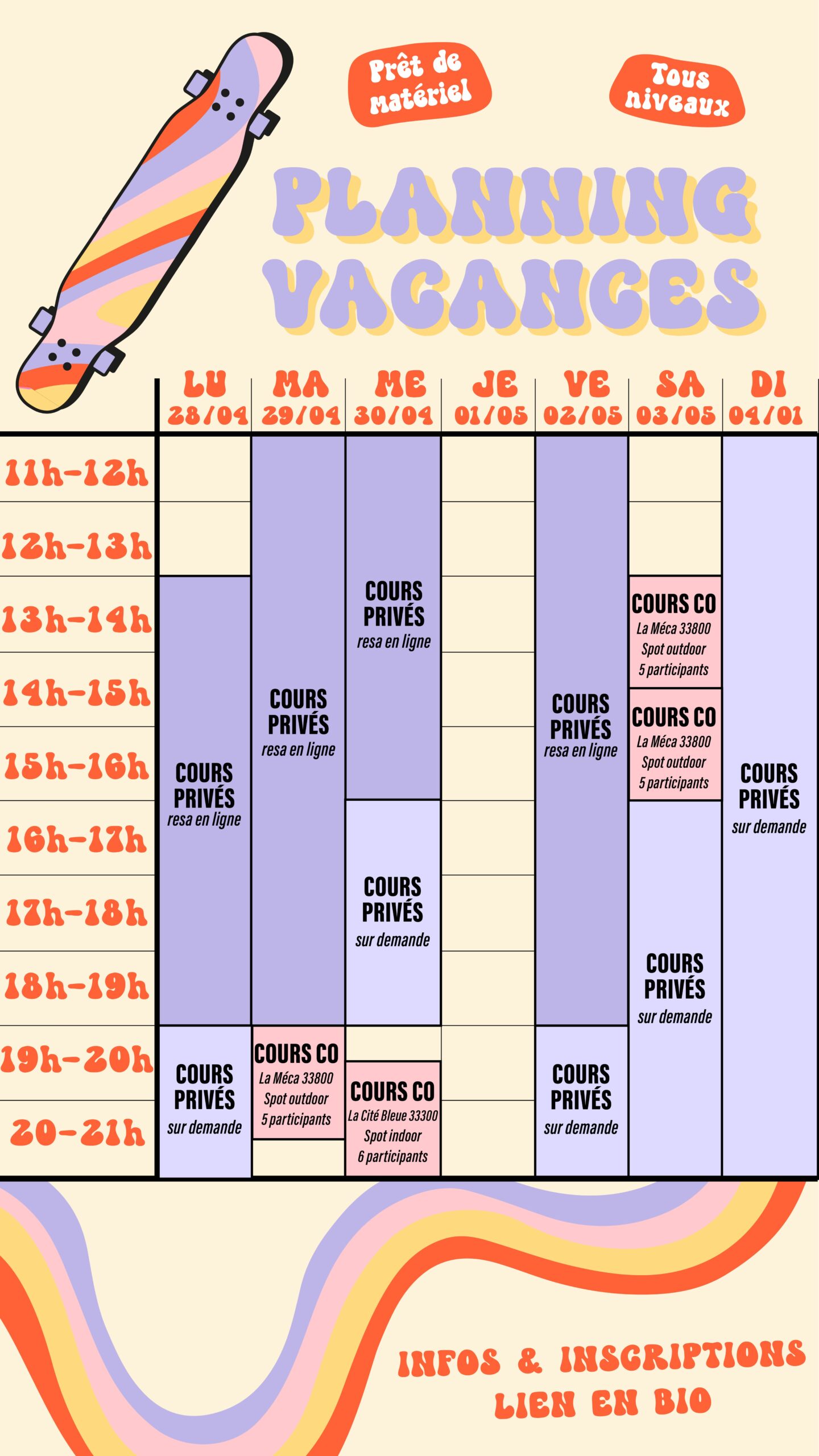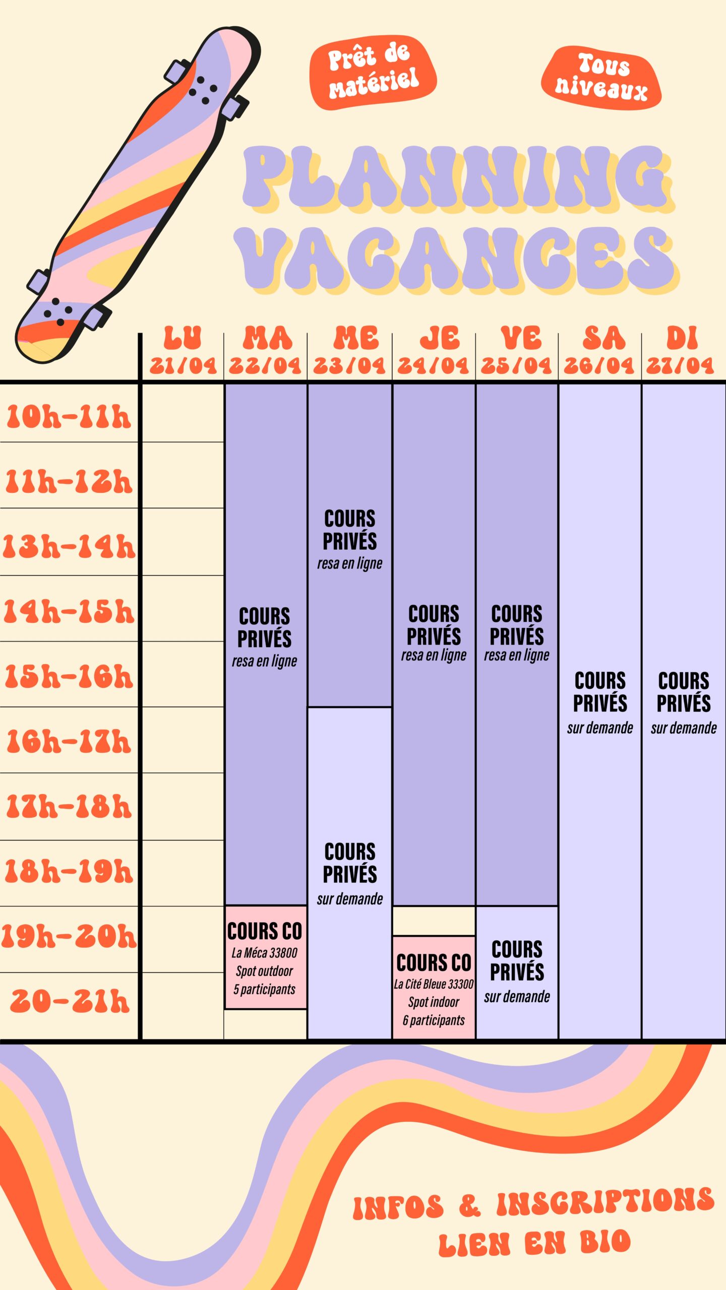 ⚠️ Pour un cours de 5 à 10 participants ou bien pour réserver un créneau moins de 24h en avance ou pour plus de créneaux, merci de me contacter directement :