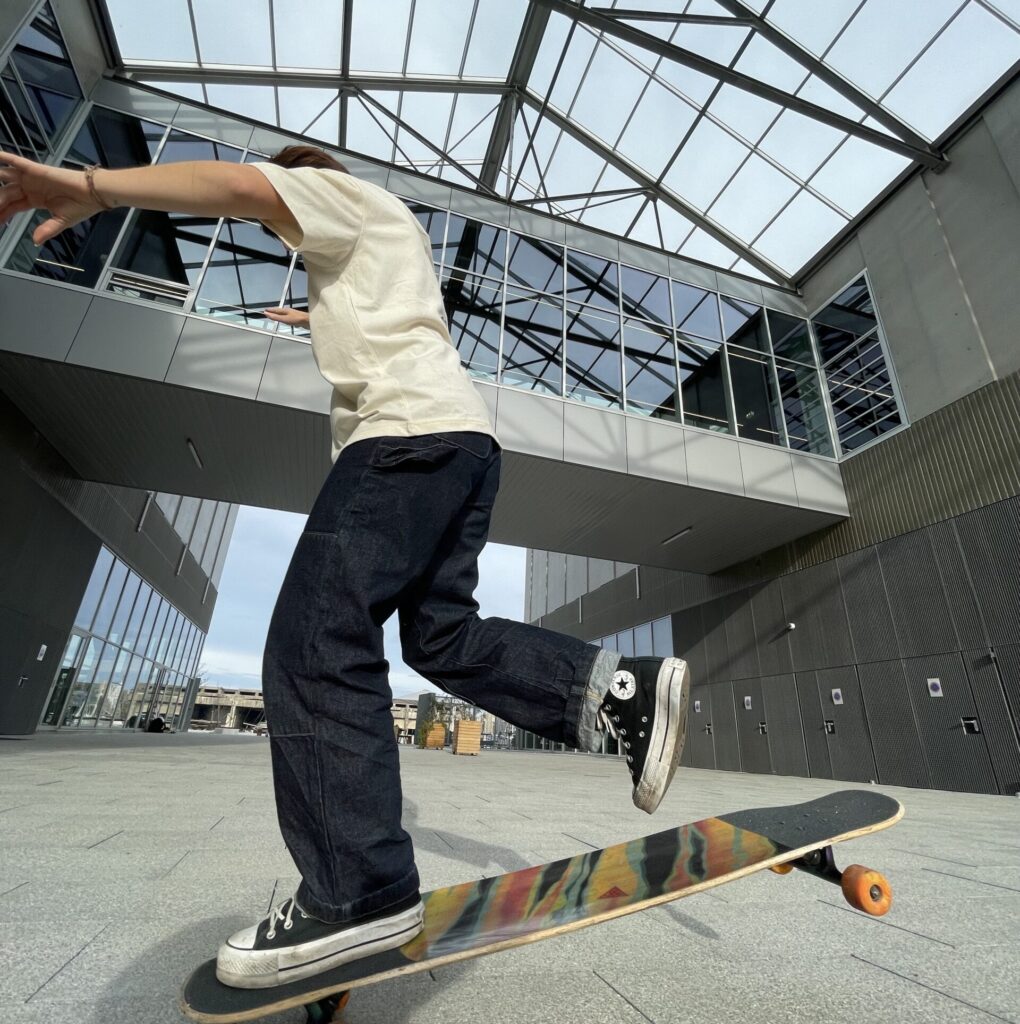 Le spot se trouve en bas à droite de la Meca (face à la Garonne). La superficie est excellente ! Néanmoins, le sol est assez abrasif, je recommande donc vivement de porter des protections. Le spot possède également une grande descente, parfaite pour s’amuser.